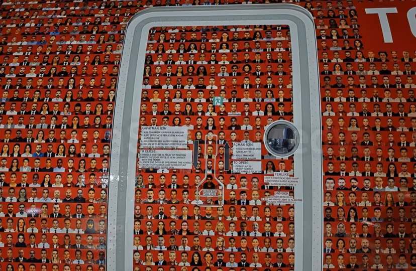 Referans Media xəbər verir ki, , təyyarənin üzərində şirkətin aktiv və təqaüdə çıxmış işçiləri ilə birgə ümumilikdə 100 min nəfərin fotosu yer alıb.