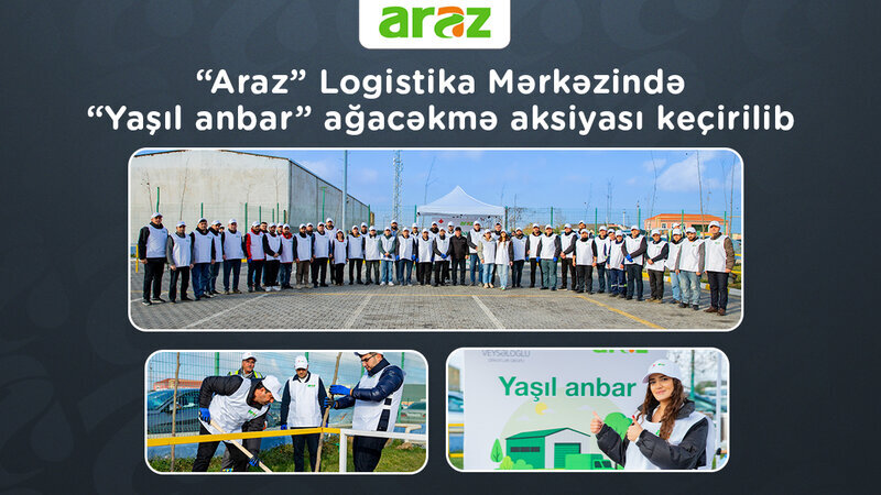 “Araz” supermarketlər şəbəkəsinə məxsus “Araz” Logistika Mərkəzinin həyətyanı sahəsində ekoloji tarazlığın qorunmasına və yaşıllığın artırılması məqsədilə ağacəkmə aksiyası keçirilib.