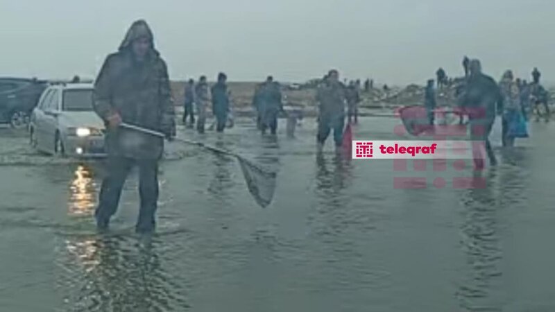 Hadisə zamanı ərazidən keçən bəzi şəxslər yaranmış vəziyyətdən istifadə edərək, ətrafa yayılan balıqları tor vasitəsilə tutmağa başlayıblar.