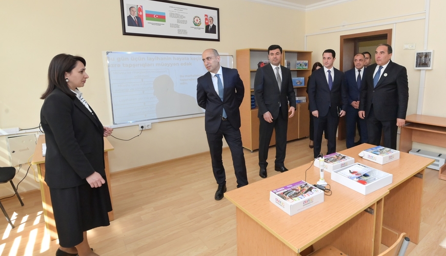 Nazir məktəbdə yaradılmış şəraitlə tanış olub, sinif otaqlarında keçirilən dərs prosesini izləyib, müəllim və şagirdlərlə görüşüb. Görüş zamanı tədrisin keyfiyyəti, təhsil mühitinin təşkili və şagirdlərin bilik və bacarıqlarının inkişafı məsələləri müzakirə olunub. Sonra nazir peşə təmayüllü siniflər, STEAM yanaşmasının tətbiq olunduğu tədris mühiti, müasir tədris metodlarının tətbiqi ilə yaxından tanış olub, eləcə də “Rəqəmsal bacarıqlar” layihəsi çərçivəsində təşkil edilən dərsləri izləyib. Məktəbdə həyata keçirilən tədris prosesi və mövcud infrastruktur barədə nazirə ətraflı məlumat təqdim olunub.