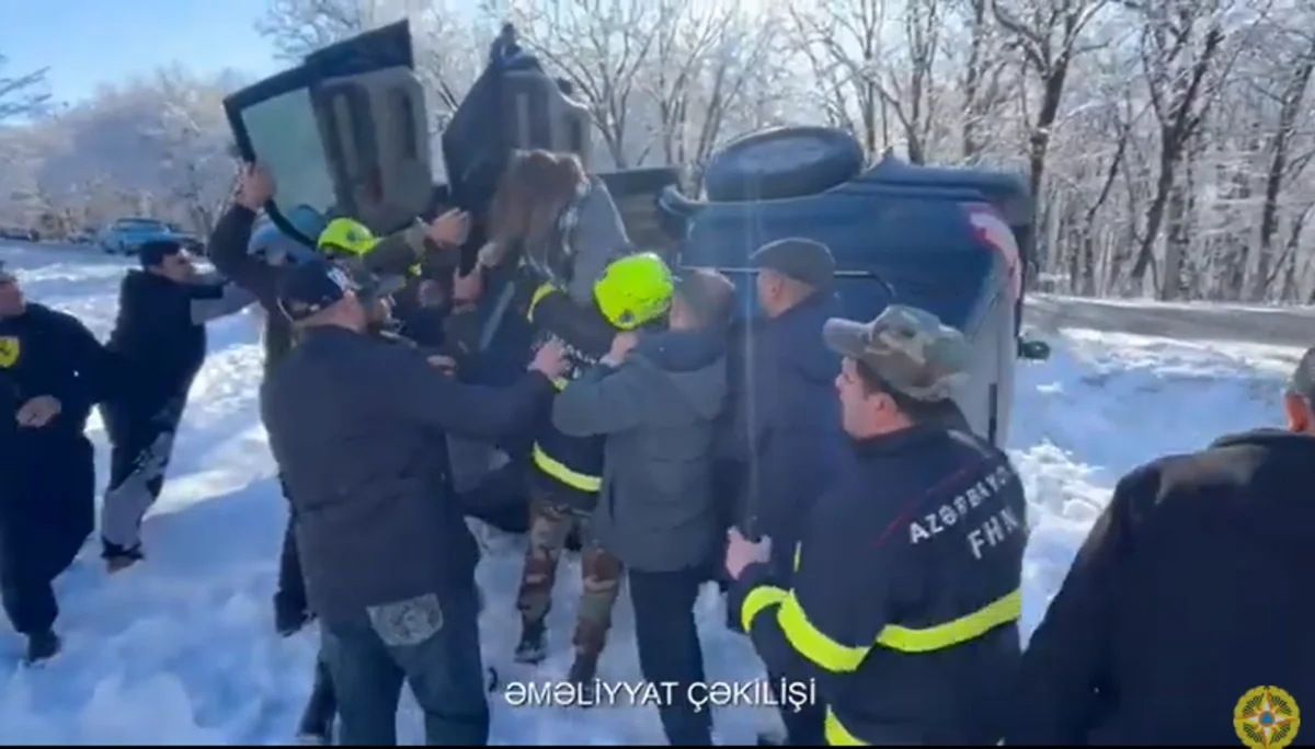 Bildirilib ki, qəza nəticəsində vətəndaşlar avtomobildə köməksiz vəziyyətdə qalıblar.