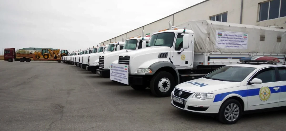 Referans Media bildirir ki, Azərbaycan Prezidentinin tapşırığına uyğun olaraq Fövqəladə Hallar Nazirliyinin avtomobilləri ilə İrana yola salınan humanitar yardıma 10 ton un, 6 ton düyü, 2,4 ton şəkər, 4 tondan artıq su, 600 kq-a yaxın çay, 2 tona yaxın dərman və tibbi ləvazimatlar daxildir.