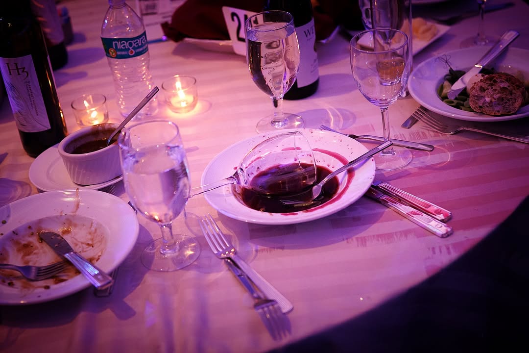 Atışmadan sonra şam yeməyi masalarının üstündə yarımçıq qalmış yeməklər, içkilər, boşqablar və tələsik tərk edilmiş yerlər diqqət çəkib. Zalda qonaqların qəfil təxliyə edildiyi, bəzi masaların ətrafında isə qarışıqlıq yarandığı görünür.